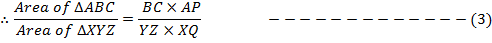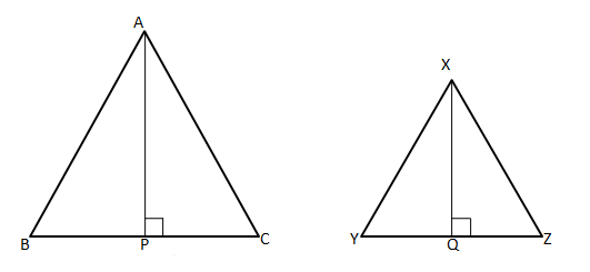 For similar triangles, the ratio of the areas of two similar triangles is equal to the ratio of the squares of their corresponding sides.